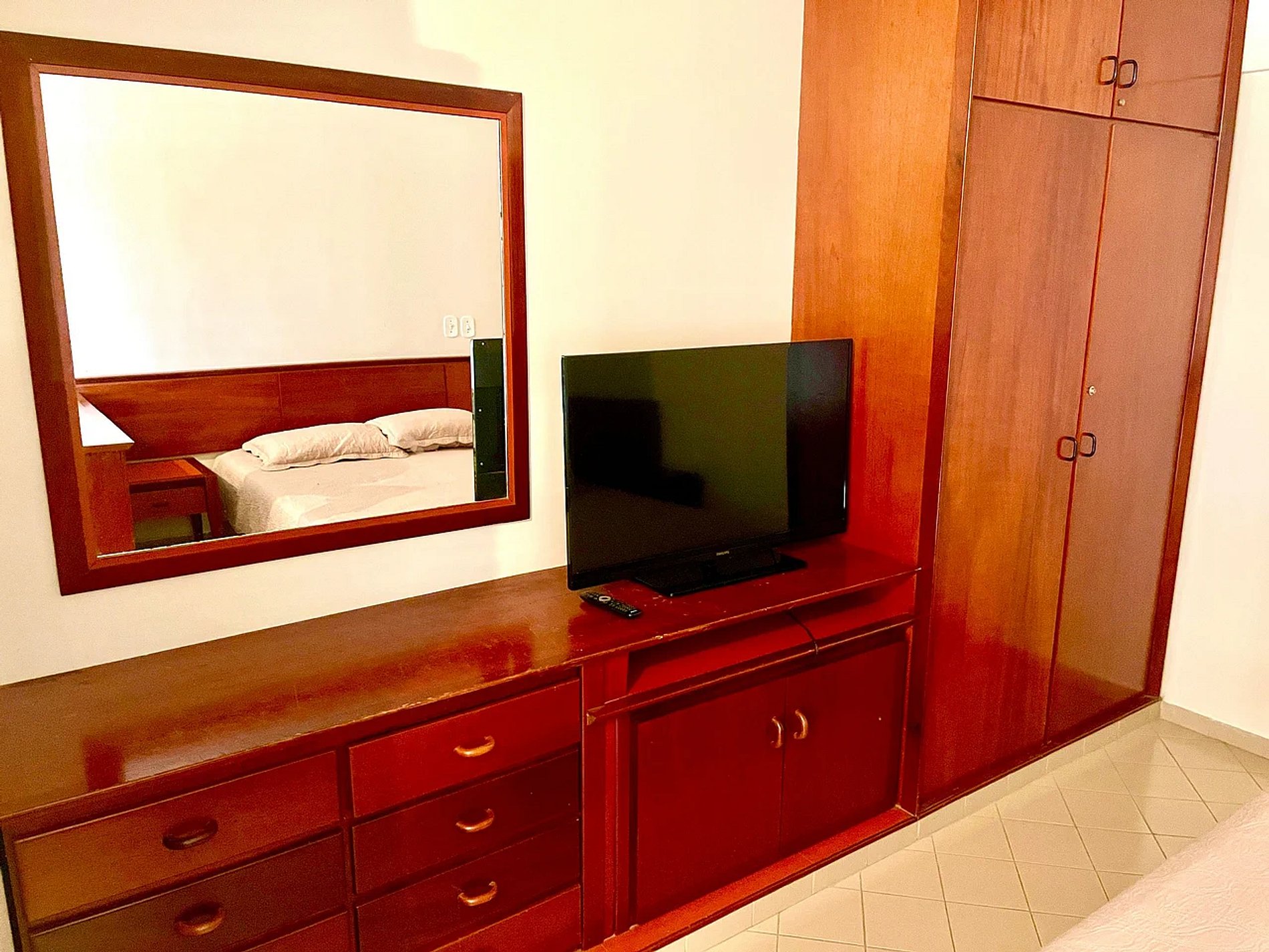 O apartamento de no edifício Eldorado Flat acomoda até cinco (5) hóspedes confortavelmente e conta com wi-fi nas áreas de lazer do condomínio, ar-condicionado, TV, banheiro privativo e uma cozinha simples e compacta para completar a sua experiência. Curta a cidade de Caldas Novas em um apartamento prático, aconchegante e pensado para você.