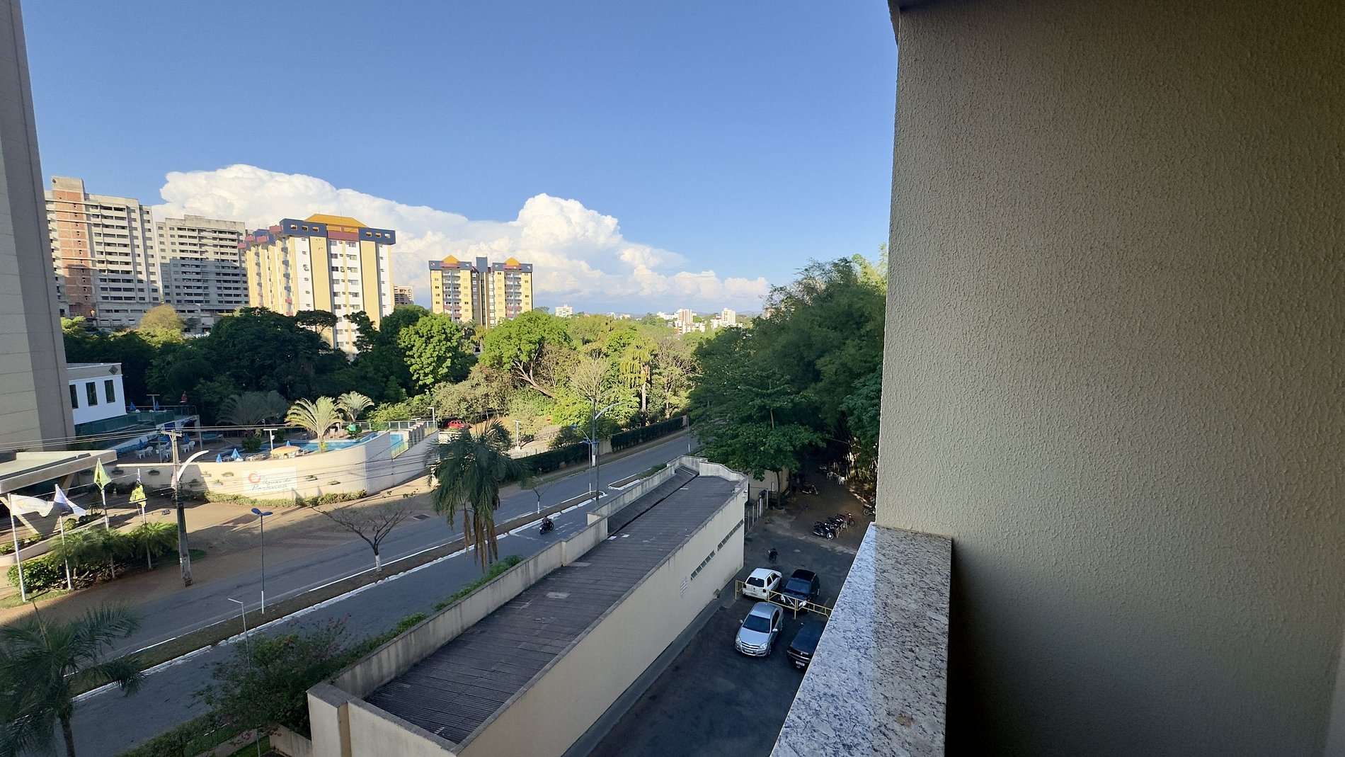 - Vista sem tela de proteção, com vista para o estacionamento/rua